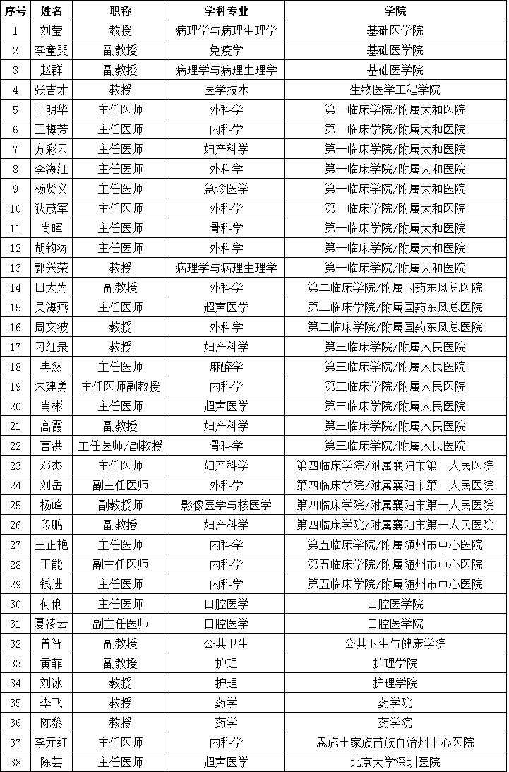 附件:湖北医药学院2023年拟评选优秀硕士生导师名单