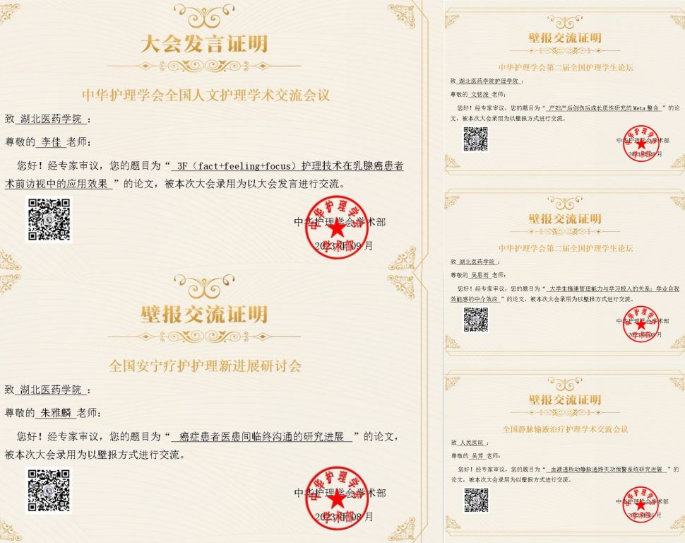 近期,护理学院17名研究生走出校园参加全国级学术会议。其中9名护理研究生先后受邀赴浙江省、山西省、湖南省、上海市参加中华护理学会全国静脉输液治疗护理学术交流会议、全国护理学生论坛、全国安宁疗护护理新进展研讨会、全国人文护理学术交流会议、全国血液净化护理学术交流会议和全国肿瘤护理新进展研讨会,交流形式包括1场大会发言、4场壁报交流、1场大会交流。在湖北省心理学会2022-2023年学术年会,我校护理研究生获大会优秀论文三等奖。