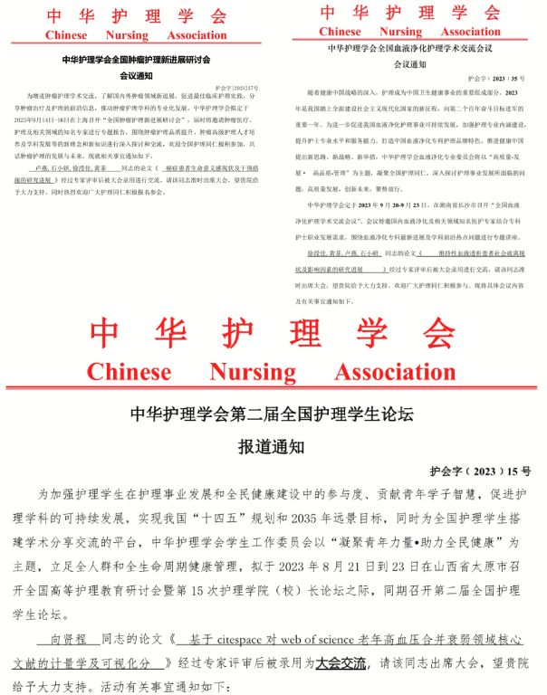 9名护理研究生受邀参加6场中华护理学会学术交流