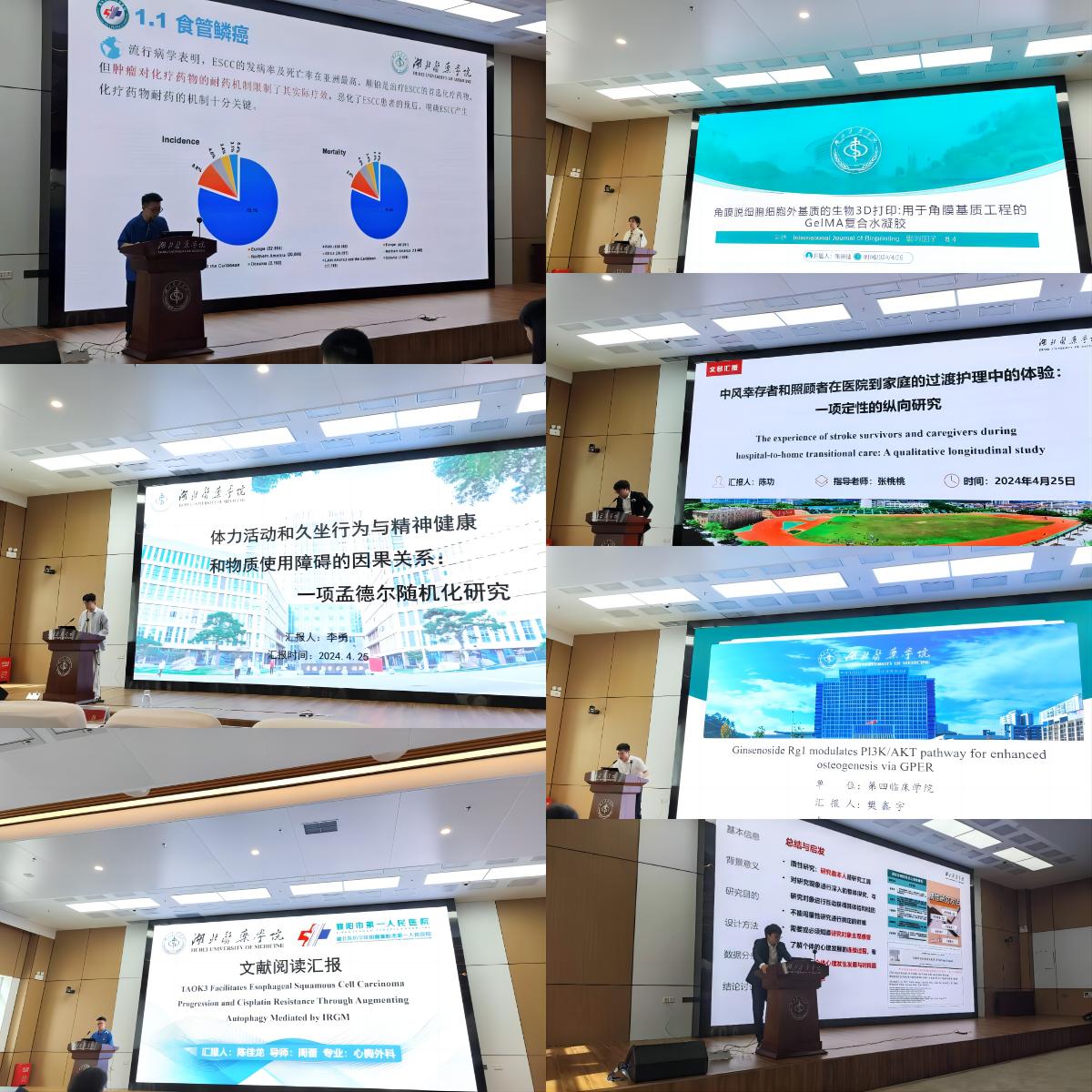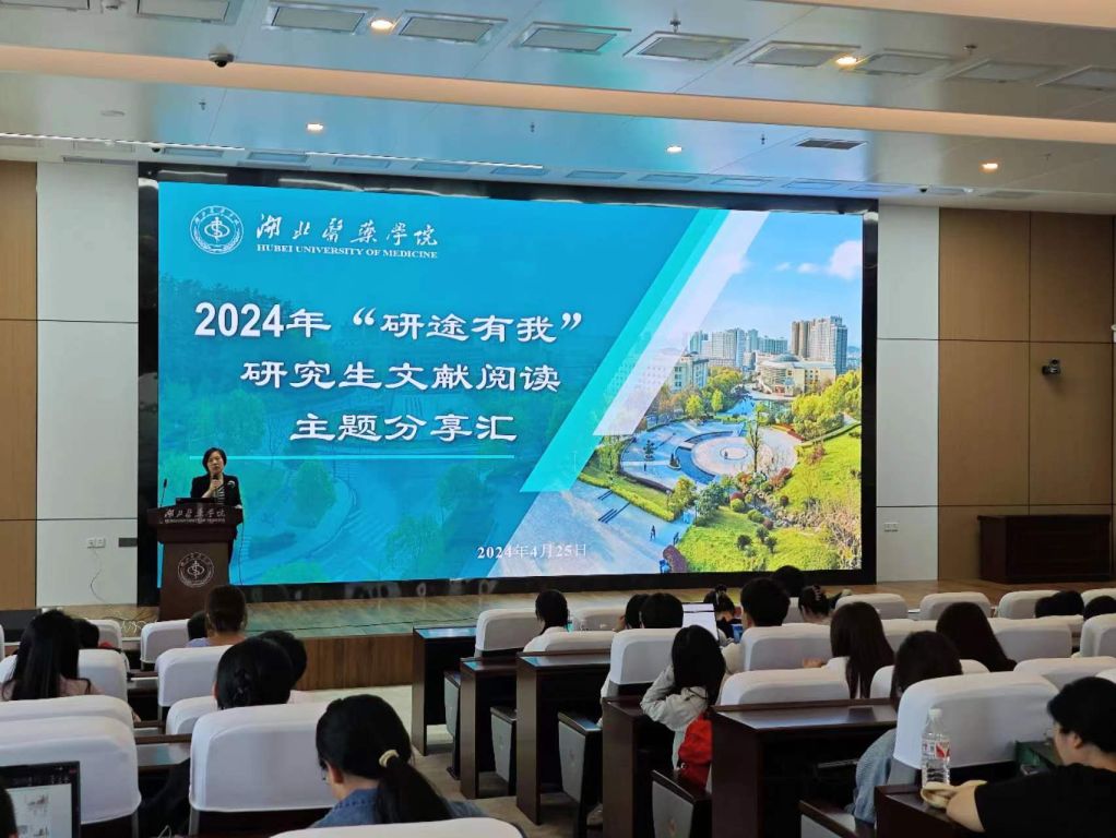 为深入开展“4.23世界读书日”全民阅读活动,引导研究生关注现代医学研究前沿动态,2024年4月25日下午,湖北医药学院2024年“研途有我”研究生文献阅读分享汇在公卫大楼2楼学术报告厅顺利举办。本次活动由吴梓佳、顾祎寒主持,研究生院有关领导和老师应邀出席。