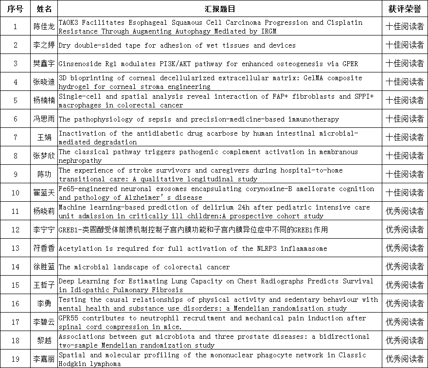 分享汇的最后,研究生院王静老师向获得“十佳阅读者”的研究生颁发荣誉证书,并对整个活动进行点评。她提出,要以批判性思维去阅读文献,避免过分相信一篇文献中所报道的结论,应多方求证。同时,在阅读的过程中要有选择性的精读和泛读,提高文献阅读效果。