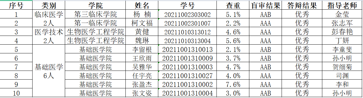 本年度获得学术型优秀学位论文研究生10人,名单如下(排名不分先后):