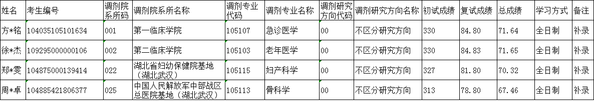 2025年湖北医药学院第一批调剂考生拟录取名单(二)