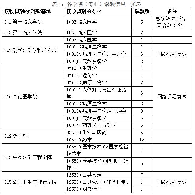 6.缺额信息详见各学院(专业)缺额信息一览表(表1),具体专业方向缺额数详见研招网“调剂系统”。