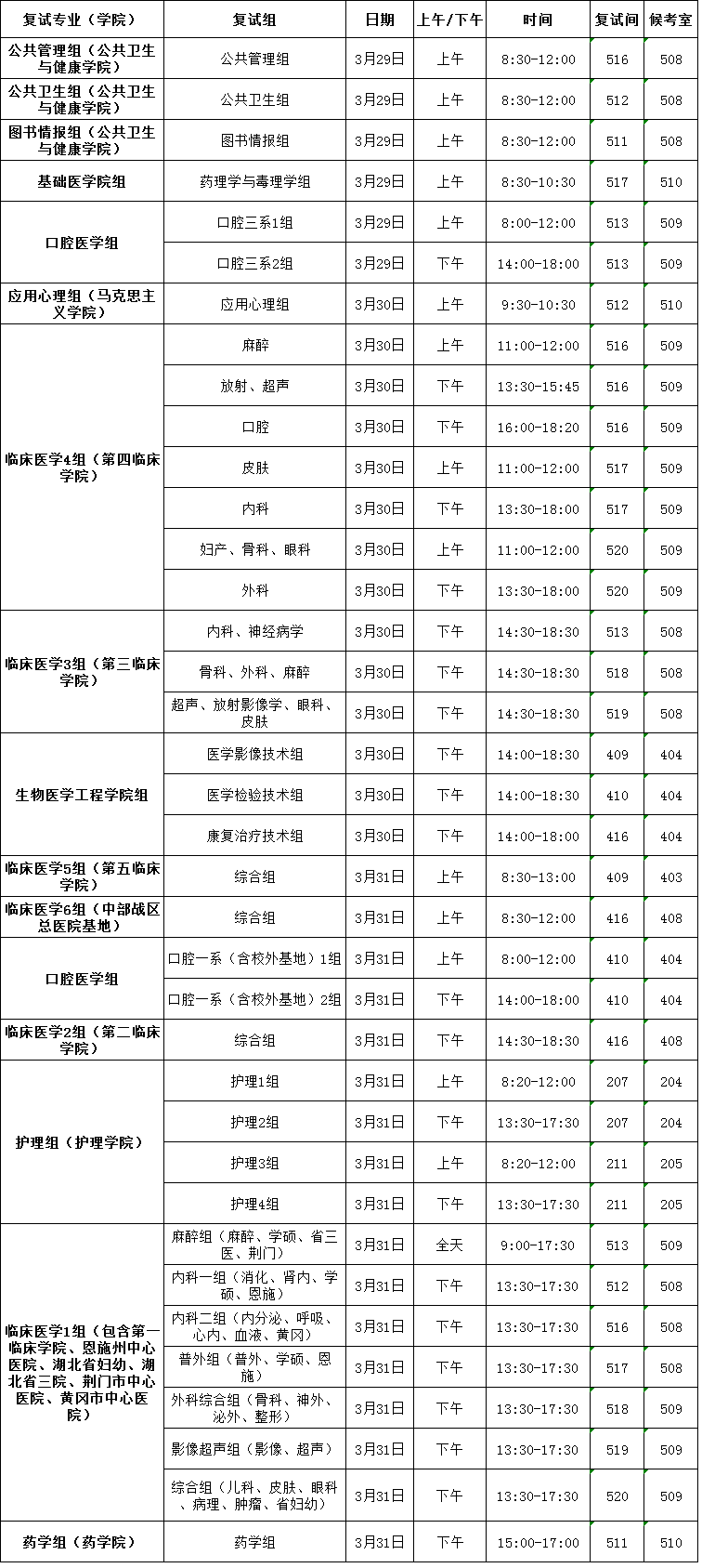 根据《湖北医药学院2026年硕士研究生复试工作方案》,落实复试工作要求,遵循错时错峰的工作原则,现将一志愿考生复试安排公布如下。请考生提前做好复试准备,按时参加复试。