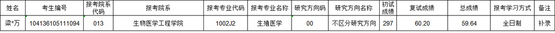 2026年湖北医药学院调剂考生拟录取名单(补录)二