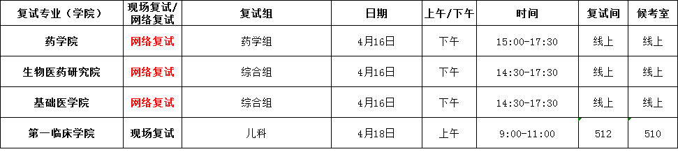 第一临床学院考生:2026年4月16日11:00-4月17日17:00。