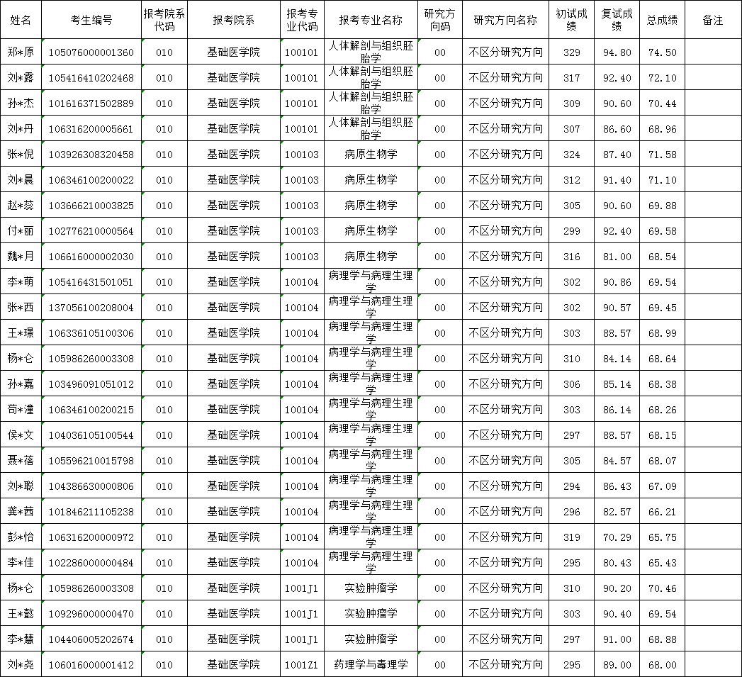 2026年湖北医药学院调剂考生拟录取名单第四批(一)