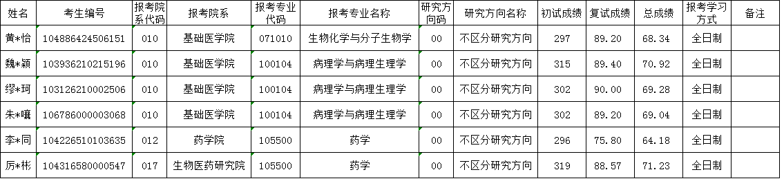 2026年湖北医药学院调剂考生拟录取名单第六批(一)